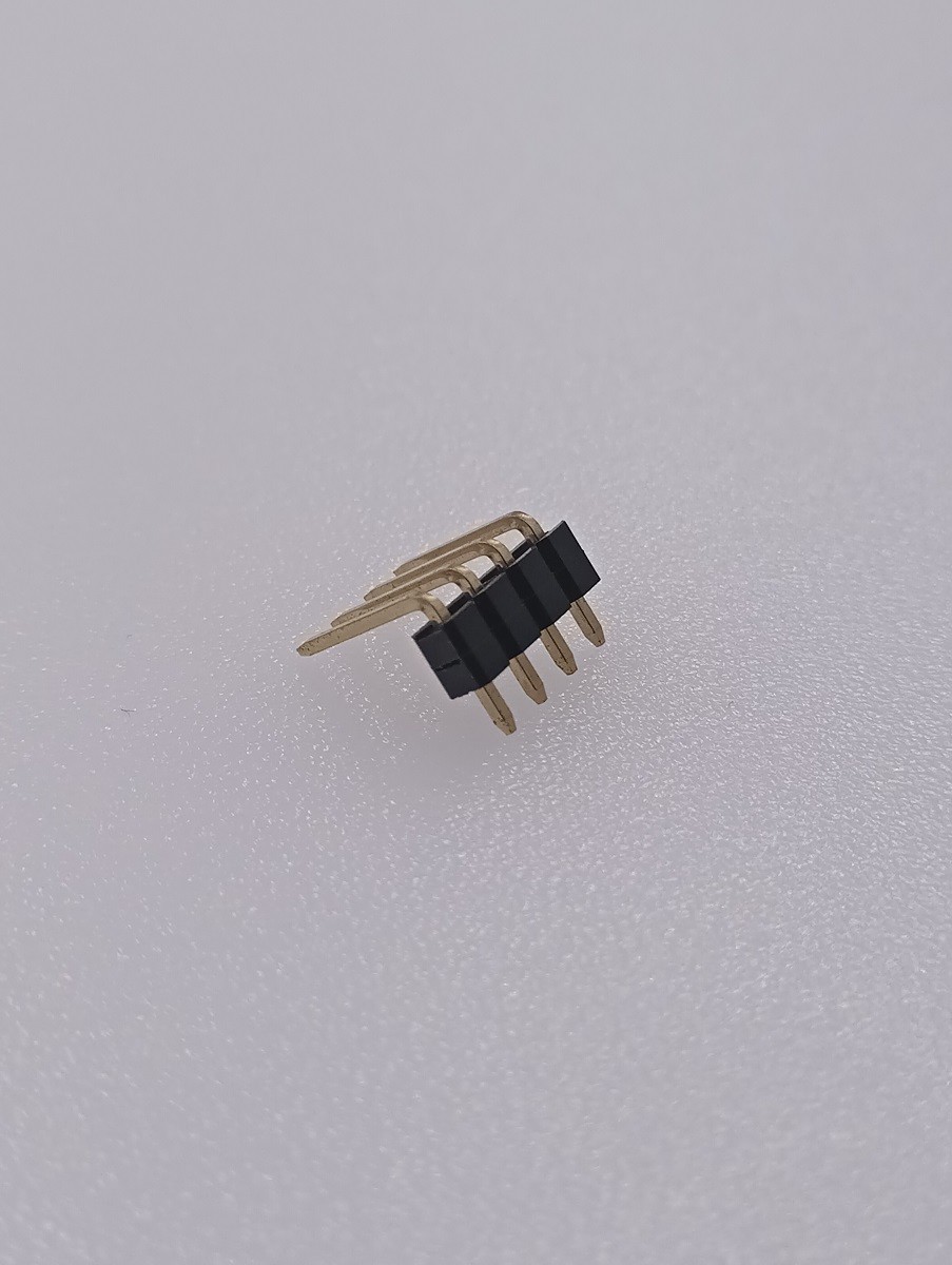 Nazwa produktu: Mosiężne pozłacane złącze wtykowe do płytek drukowanych, podziałka 2,54 mm 1x4P Kątowy montaż na płytce drukowanej DIP